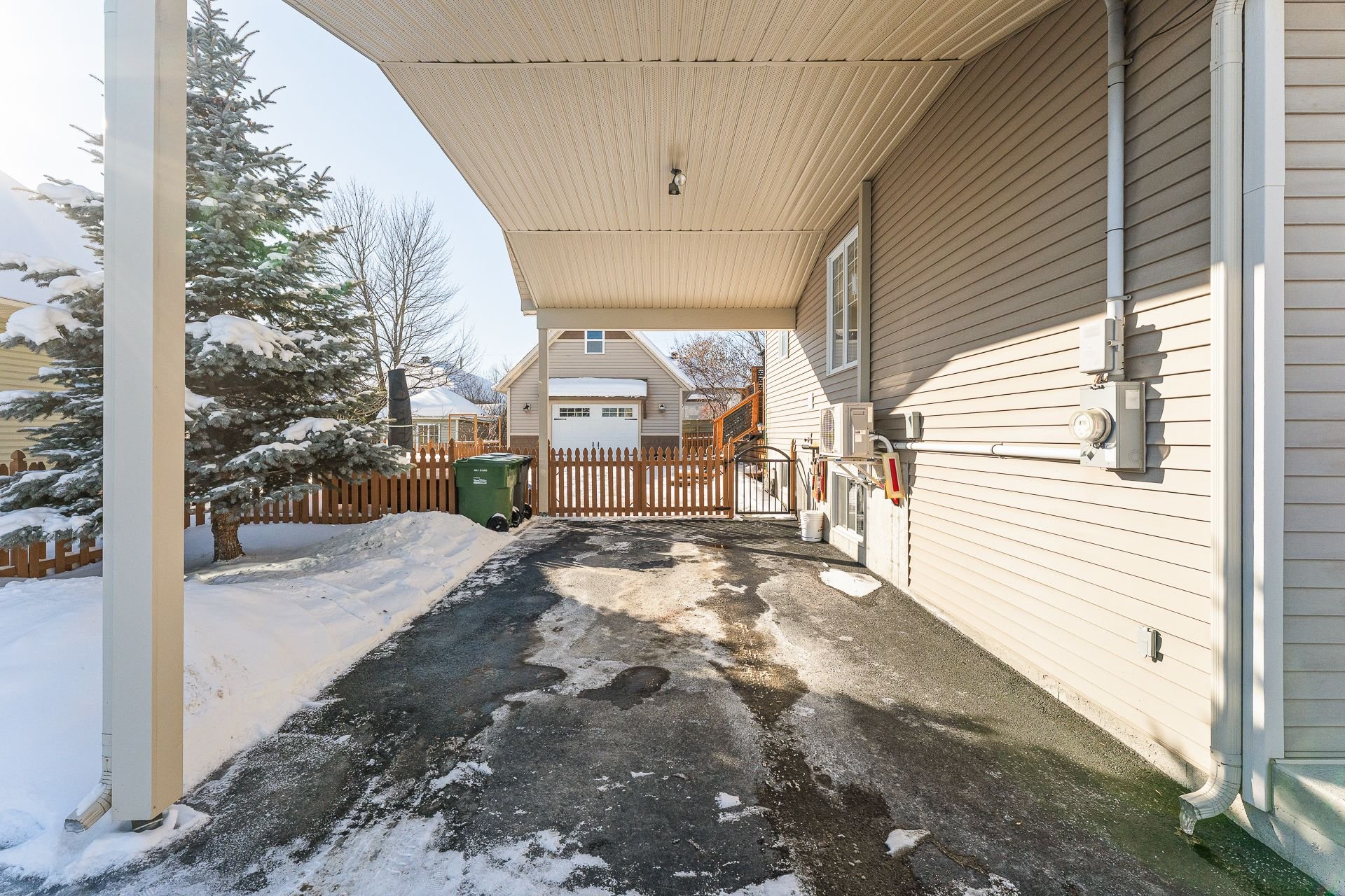 * Carport avec l'entrée de cour asphaltée.