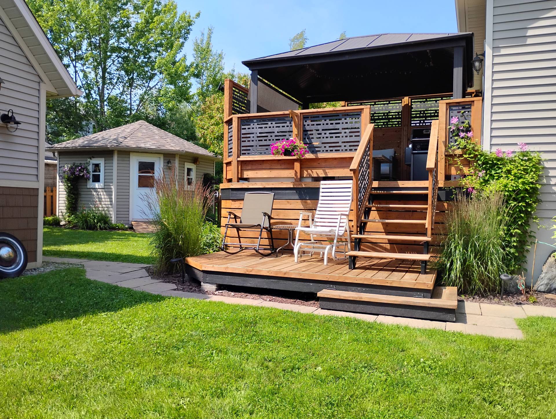 * Patio avec pergola pour vos soupers d'été.